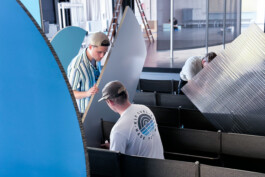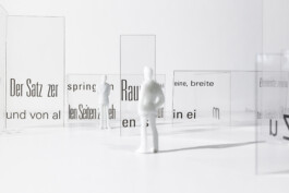 Dabei wurde die Schrift von der Fläche gelöst, Formen und Geometrien transformiert, mit Materialität gespielt und durch die Anordnung und Funktion im Raum neue Kontexte und Zusammenhänge sichtbar gemachen.