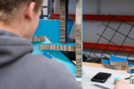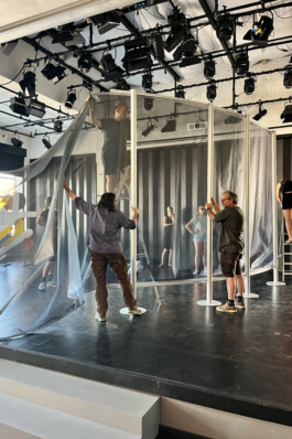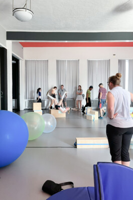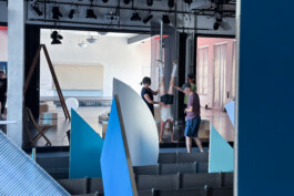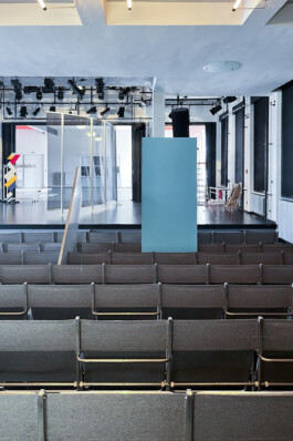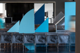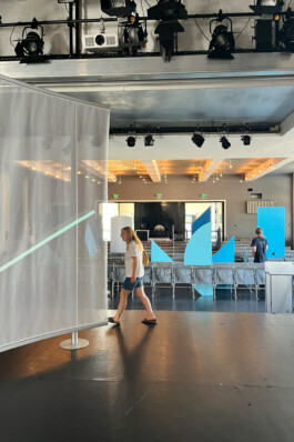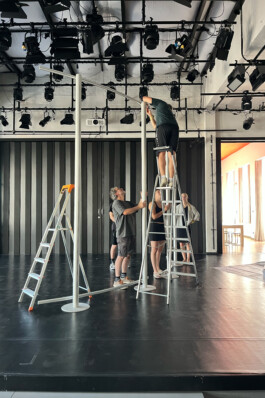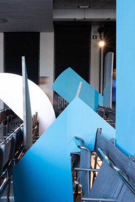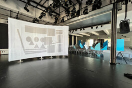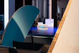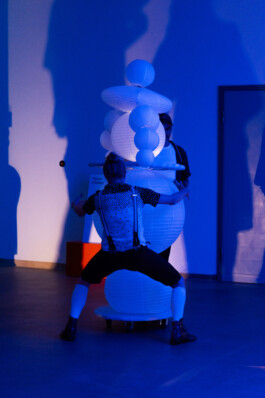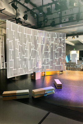 Das 27. Bauhausfest am 6. und 7. September 2024 feierte den 100. Geburtstag der legenden Bauhauskapelle. Im Rahmen eines Entwurfs sollte für den zentralen Bühnenraum der Stiftung Bauhaus Dessau eine räumliche Szenografie entwickelt werden, die die Idee der Bühne als Experimentierraum erfahrbar macht. Die räumliche Gestaltung soltel die Besucher:innen dazu animieren sich selbst in Bewegung zu versetzen und Teil der Tanz-Performances zu werden. Das Auditorium, ausgestattet mit klassischen Sitzreihen, sollte hierfür seine Funktion ändern und die Gäste bereits zur Interaktion einladen.