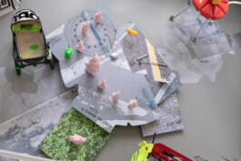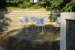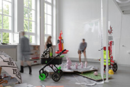 Wie können Formate, Formen und Wege des Öffentlich–Werdens von Widerstand gezeigt werden? Die Gestaltung der Ausstellung, die im Seminar Protest Ausstellen entwickelt wurde, basiert auf dem Konzept einer experimentellen Bühne. Potentielle Mitstreiter*innen werden aufgefordert, die Handlungswerkzeuge in einem abstrakt übersetzten Stadtraum zu aktivieren und in Aktion zu versetzen. Dabei überlagern sich stattgefundene Ereignisse dokumentarisch mit dem Zusammenspiel von Objekten, Körpern, Orten und Handlungen im Ausstellungsraum. Es entstehen potentielle Aktionsfelder in einem Spiel zwischen Realität und Fiktion, zwischen Gegenwart und möglicher Zukunft – mit Objekten, die zum widerständigen Handeln auffordern.