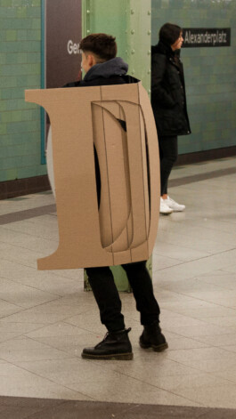 Dabei wurde die Funktion von Schrift im Raum als Orientierung sowie als Hinweisgeber und Vermittler von Inhalten und Handlungen analysiert. In Experimenten zu Form, Geometrie und Materialität untersuchten wir wie Schrift den Raum und Interaktionen beeinflusst. Schrift wurde von der Fläche gelöst und macht durch Bewegung, Anordnung und Funktion im Raum neue Kontexte und Zusammenhänge sichtbar.