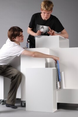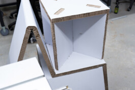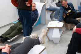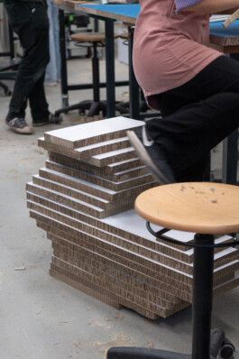 Im Workshop wurden in den interdisziplinären Wochen experimentelle Sitzmöbel aus Karton entwickelt. Von der ersten Entwurfsskizze über Arbeitsmodelle bis hin zum Prototyp im Maßstab 1:1 erlebten die Studierenden den gesamten Designprozess. Im Mittelpunkt stand das Zusammenspiel von Form, Funktion und Konstruktion, dabei erforschten die Studierenden nicht nur die Eigenschaften von Pappe und Karton als Material, sondern auch die Haltung und Bewegung des Körpers. Die Sitzmöbel schaffen neue Begegnungs- und Kommunikationsräume, die Austausch und Zusammenarbeit fördern. Der 3-tägige Workshop fand in der neuen Modellbauwerkstatt des Studiengangs Architektur am Institut für Bauwesen statt.
